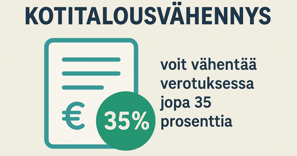 Kotitalousvähennys tarkoittaa käytännössä sitä, että voit vähentää verotuksessa jopa 35 prosenttia ostamiesi kotihoito- tai muiden kotitalouspalveluiden työn osuudesta. Kyseessä on